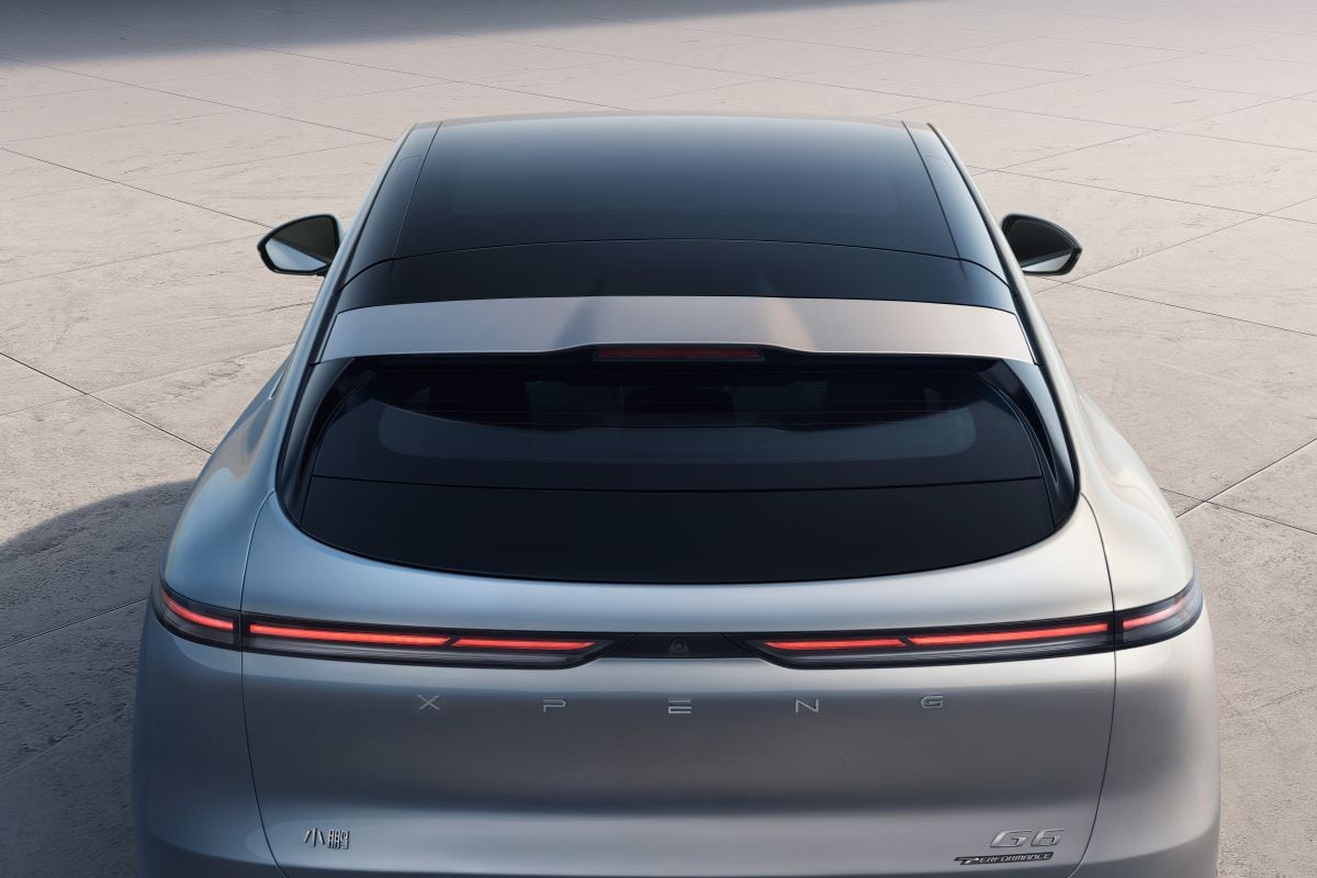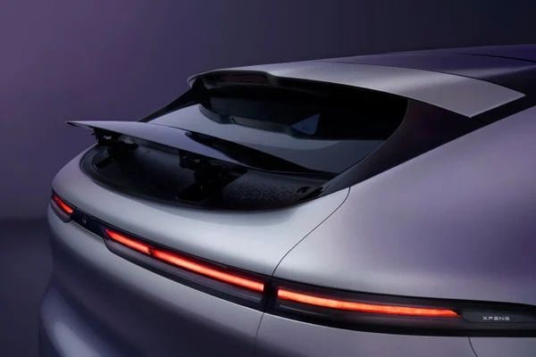 Recht van achteren valt dat gewicht weg en laat Xpeng ook hier zijn designcapaciteiten zien. Het zwarte dak, dat de visuele hoogte verbergt, loopt door in de achterruit en de zwarte spoiler die zich onder in de grafische outline van de ruit bevindt.