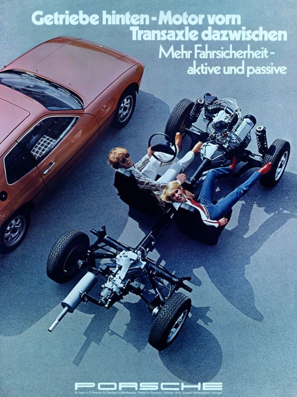 De meeste auto’s op deze pagina hebben de versnellingsbak vóór de achteras. Bij de Porsche 924 zit hij juist achter de achteras, een erfenis van de voorwielaangedreven Audi 100 waarmee de 924 zijn transmissie deelt. De 944, de 968 en de 928 zijn ook transaxles.