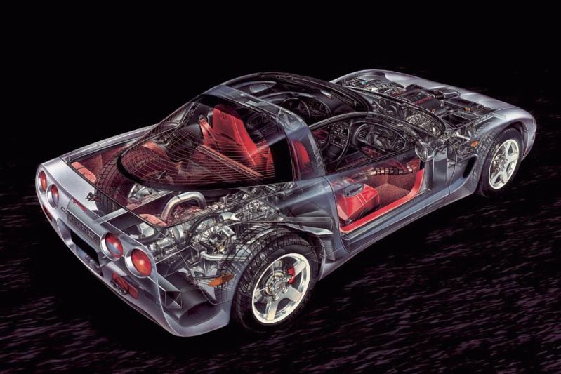 Vier generaties lang vormen motor en versnellingsbak bij de Chevrolet Corvette een eenheid, bij de vijfde editie verhuist de transmissie naar de achteras en bij de nieuwste editie zit nu ook de motor achter de voorstoelen.