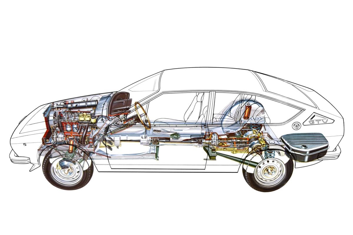 Na de Giulietta en de GTV hebben ze bij Alfa Romeo de smaak te pakken met transaxles. Ook de Giulietta, de 90, de 75 de daarvan afgeleide SZ krijgen de versnellingsbak onder de achterbank.