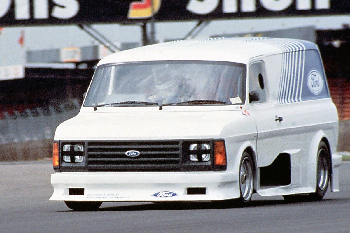 Het idee van Renault was niet nieuw: in 1971 schroefde Ford al een Transit-koets op de GT40 Le Mans-auto en in 1984 deed het iets soortgelijks met een Groep C-auto en een Cosworth DFL V8-blok, afgeleid van de F1-motor. De Transit-body was dit keer niet van staal maar van koolstofvezel.