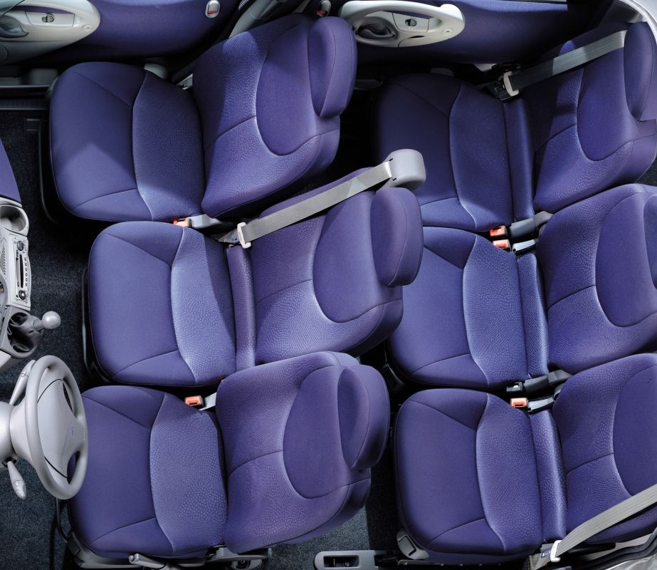 Niet alleen kleine auto’s kun je slimmer indelen dan andere fabrikanten. Dat bewees Fiat in 1998 met de Multipla. Over de vormgeving van die auto is al genoeg gezegd, waardoor je bijna zou vergeten hoe slim hij eigenlijk is. De Multipla is namelijk geen simpele vijfzitter, nee, standaard biedt hij ruimte aan zes personen! Door wat extra breedte en de bijzonder rechtopstaande zijramen kan een zesde persoon gewoon middenvoor plaatsnemen. Voor Multipla-rijders die dat maar raar vonden, bood Fiat, in plaats van stoel zes, een koelbox aan. Helemaal uniek bleef de uitvoering van Fiat niet. Ook de Honda FR-V, die zes jaar later op de markt kwam, had drie zitplaatsen voorin.