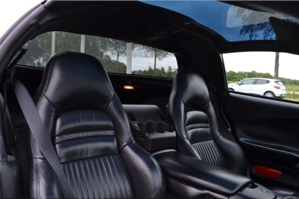 Foto’s tonen een keurig in- en exterieur, allebei uitgevoerd in sinister zwart. En wat de kilometerstand betreft, als aandrijving dient de aloude 5.7, in dit geval gekoppeld aan een traditionele viertraps automaat. 344 pk betekent een specifiek vermogen van 60 pk per liter, dus het enorme blok heeft het nooit zwaar (gehad) - wel altijd dorst. Leren bekleding, een head-up display, elektrisch verstelbare stoelen met geheugen, cruisecontrol … Klinkt luxe en comfortabel - de C5 laat zich in de stad gewillig berijden. Op de buitenweg schakel je de traction control uit en is het spelen geblazen, mede dankzij de prettige gezichtsverdeling (de automaatbak is tegen de achteras geplaatst). En ja, een in prijs en bouwjaar vergelijkbare Porsche 911 (996) mag strakker aanvoelen en een hoogwaardiger interieur hebben, de C5 met z’n door-en-door beproefde krachtbron is betrouwbaarder dan de eerste generatie watergekoelde zescilinders. Het uiterlijk is een gevalletje love it or hate it.