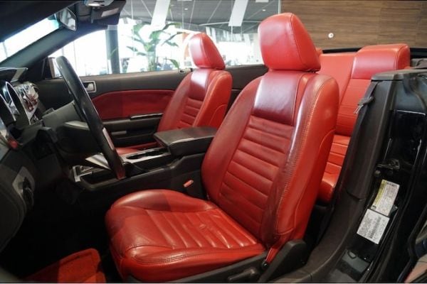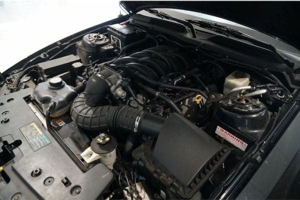 Al bij de eerste aanblik zie je dat deze topless-Mustang evenmin een doetje is: zwart, twee rode banen die over de gehele carrosserie aangebracht zijn, stoer spoilerwerk, twee flinke afvoerbuizen … Het knalrode lederen interieur is evenmin voor bescheiden mensen geschikt. Een en al maakt de Mustang wellicht een iets minder serieuze sportwagen dan de Corvette - neem alleen al de keuze uit 125 verschillende kleuren dashboardverlichting voor het in retro-stijl opgebouwde instrumentarium. Toch levert de 4.6-V8 stevige prestaties: bijna net zo snel op de 100 als de Corvette. De topsnelheid is wel flink lager, de benzinedorst is ook een stukje minder.