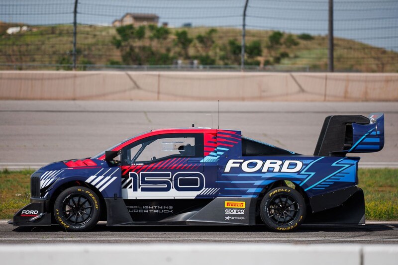 Het spoiler- en vleugelwerk van deze nieuwe knotsgekke elektrische Ford moet bij een snelheid van zo'n 240 km/h maar liefst 2.722 kilo aan neerwaartse druk opleveren. De aandrijflijn is verder gelijk aan die van de reeds genoemde SuperVan en bestaat dus ook uit drie elektromotoren. Twee daarvan houden zich bezig met de achterwielen, het derde exemplaar zit op de vooras. Het apparaat is onder meer uitgerust met koolstofkeramische remmerij en staat op uit magnesium vervaardigde lichtgewicht wielen met Pirelli P-Zero banden. Met deze F-150 Lightning SuperTruck hoopt Ford Performance de Pikes Peak-tijd die het vorig jaar met de SuperVan 4.2 klokte, te verbeteren. Die raceauto wist de heuvelklim in 8 minuten en 47,68 seconden af te leggen.