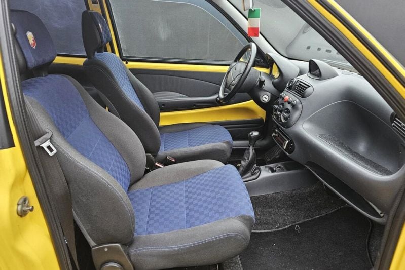 Was de Seicento Sporting je nog niet opvallend genoeg, dan kon je ook nog bijbetalen voor een heuse Abarth-behandeling. Die heeft deze Seicento uit 1998 ondergaan. Dat zie je onder meer aan de dikkere sideskirts met Abarth-logo's erop. Ook heeft iemand er ooit nog wat opvallender wieltjes onder gezet en zijn er hier en daar nog meer uiterlijke aanpassingen gedaan. Helemaal origineel is hij dus niet en ook ontbreekt de achterbank (scheelt toch weer wat kilootjes), dus dikke kans dat er aardig mee getrapt is. Hij heeft ook behoorlijk wat verschillende eigenaren gehad, en dat is niet een heel gunstig teken. De auto lijkt er in elk geval nog wel aardig knap bij te staan. Technisch kan er ook niet heel veel grondig misgaan, of het is vrij goedkoop op te lossen. Voor €1.399 kun je er vast nog wel een leuke kleine scheurneus aan hebben.