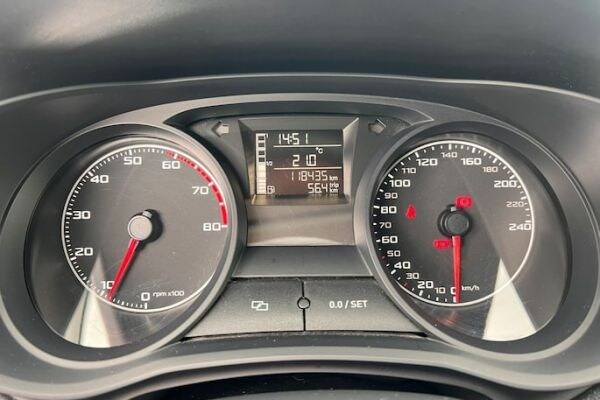 Voor hetzelfde bedrag staat deze strak gelijnde Seat Ibiza ST voor je deur. Minder kunstzinnig, sportiever uitgedost dan de Fransman, zeker in de FR-uitmonstering. Ook binnenin treffen we dit sfeertje aan met onder meer dashboardklokken met ‘hangende’ wijzernaalden. Het 85 pk-motortje rijdt er geen kilometer harder door, maar het staat wel stoer! De P-488-BS is een maand jonger dan de XL-Clio (en heeft een stuk minder ervaring), aan het kenteken is dat echter niet te zien: import, dus. En weliswaar waren de TSI’s in 2014 al op vele fronten verbeterd, het is beslist aan te raden om deze occasion mede daarom met garantie aan te schaffen. Kost wel extra: zes maanden inclusief apk en grote beurt maakt ’m €800 duurder, drie maanden is €500. Voorin biedt de Ibiza de meeste ruimte van ons trio, achterpassagiers zitten in de Fabia het best. Helemaal achterin draagt de Spanjaard de rode lantaarn. Gevalletje lifestyle-combi?