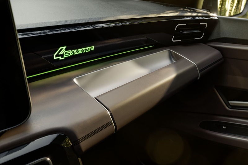En deze Renault 4 Savane 4x4 Concept? Die heeft als enige Savane in de Renault-geschiedenis wél vierwielaandrijving. Hoe krachtig hij is, vermelden de Fransen niet, maar naast de 120 of 150 pk sterke elektromotor op de vooras heeft dit exemplaar dus een extra elektromotor die zich bezighoudt met de achterwielen.