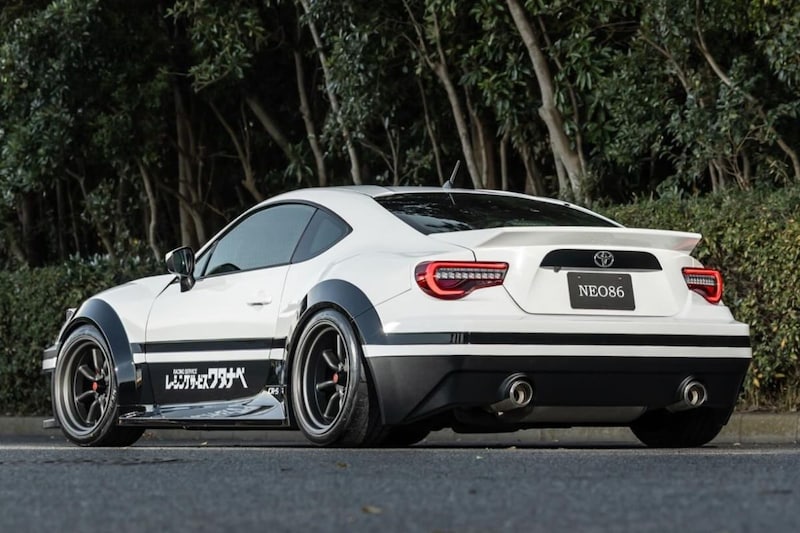Het bedrijf maakt van een Toyota GT86 – inderdaad, de voorganger van de huidige GR86 – een auto die overduidelijk is geïnspireerd door de rijdende legende waaraan hij het cijfer in zijn naam ontleent. Die AE86 had als Trueno ook klapkoplampen (als Levin niet) en het is die Trueno-neus die op deze GT86 is geplakt. Uiteraard niet een-op-een, al is de bredere neus op de moderne auto overduidelijk een verwijzing naar het jaren 80-icoon. We zien een soortgelijke hoekige bumper, klassieke knipperlichten en mistlampen en uiteraard heeft-ie klapkoplampen, voorzien van lekker ouderwetse halogeenkijkers in rechthoekvorm. De rest van de auto is met zijn wielkastverbreders en kleurstelling ook duidelijk op de meest iconische verschijningsvorm van de AE86 geïnspireerd, hoewel hier tegelijkertijd meteen duidelijk wordt dat het om een GT86 gaat.