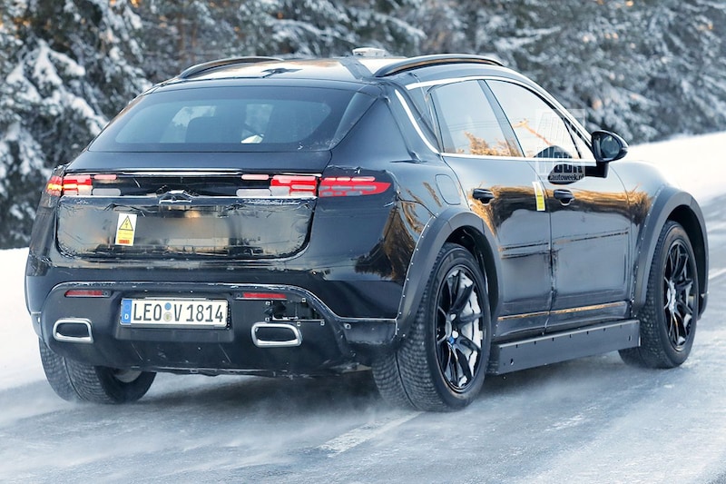 Het ingepakte prototype op deze foto's lijkt op het oog een vroeg testexemplaar van de elektrische Macan te zijn. Maar schijn bedriegt. De spoorbreedte van dit testmodel is duidelijk groter dan die van de elektrische Macan, waarop onder meer de verzaagde en verbrede wielkasten wijzen. Verder hebben we de indruk dat de voorruit onder een iets andere hoek staat dan die van de elektrische Macan, al kan dat optisch bedrog zijn. We gaan er vooralsnog vanuit dat de elektrische Macan op een variant van het gezamenlijk door Porsche en Audi ontwikkelde PPE-platform rust. Audi past dat straks toe onder de A6 e-tron en Q6 e-tron, Porsche onder de elektrische Macan. Dat zou immers direct verklaren waarom Porsche voor het vroege testwerk met de elektrische Cayenne en elektrische Macan van stal heeft gehaald. De elektrische Cayenne vervangt op termijn de complete Cayenne-familie, al is het niet ondenkbaar dat de variant met verbrandingsmotoren gewoon nog een poosje leverbaar is.