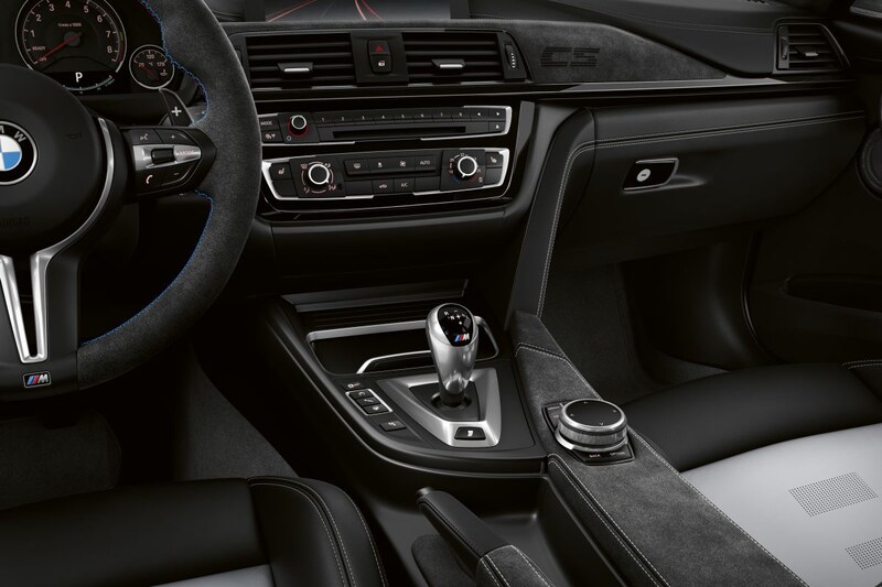 Op optisch vlak onderscheidt de M3 CS zich van z'n broer middels een hele rits uit met koolstofvezel versterkt kunststof (CFRP). Zo zijn de motorkap, het dak, de splitter, de achterspoiler en de diffuser helemaal uit dit lichtgewicht materiaal opgetrokken. Dat levert een gewichtsbesparing op van 10 kilo ten opzichte van de reguliere M3. In het interieur past BMW een combinatie van Alcantara en leer toe, materialen die in de kleuren Silverstone en zwart zijn uitgevoerd. Gescheiden klimaatregeling moet je overigens ontberen, BMW levert reguliere klimaatregeling om gewicht te besparen.