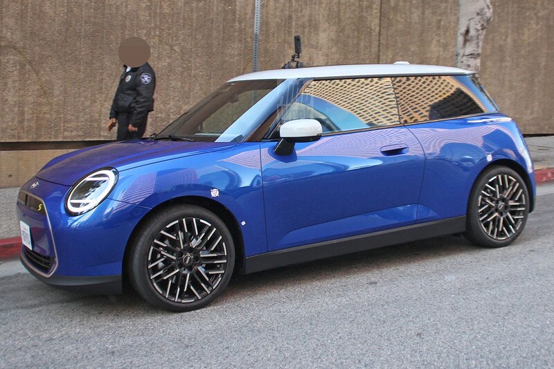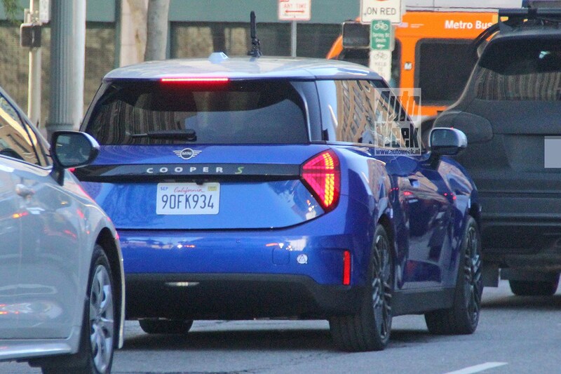 Wacht even. Mini Cooper? Dat is toch een uitvoering? Zeker. Maar straks is Cooper daadwerkelijk een modelnaam. De huidige drie- en vijfdeurs hatchbacks worden namelijk opgevolgd door een modellenreeks die Cooper heet. Al in december 2021 doken de eerste foto's op van wat mogelijk de nieuwe driedeurs hatchback zou zijn en op deze uitgebreide set nieuwe platen is die driedeurs Mini Cooper nog beter te zien. Het tijdens filmopnames in Los Angeles gekiekte exemplaar is zomaar een Mini Cooper, maar direct de volledig elektrische variant ervan. Het is nog even de vraag of die weer Mini Cooper SE gaat heten zoals de huidige. Op het achterste van de blauwe hatchback staat immers alleen Cooper S geschreven, maar het ontbreken van uitlaateindstukken wijst er zeer waarschijnlijk op dat dit de elektrische variant is.