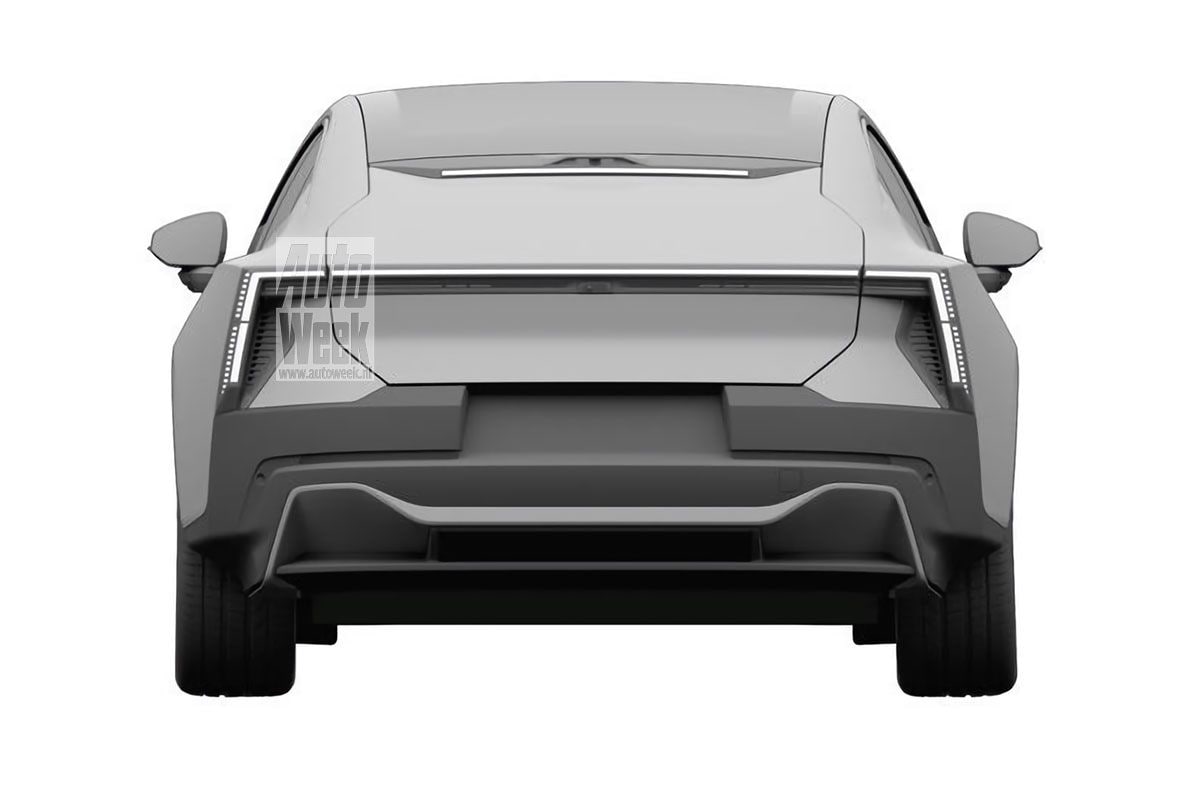 Wie de Precept Concept een plaatje vond is ongetwijfeld blij met het feit dat Polestar trouw lijkt te blijven aan het design van dat studiemodel, al verandert er uiteraard het een en ander. De Polestar 5 heeft een milder vormgegeven voorklep en de aan de achterkant scharnierende achterportieren die de Precept Concept zogenoemde suicide doors gaf, worden vervangen door conventioneel openende exemplaren. De Polestar 5 op deze patentplaten moet het zonder lidar-module op het dak doen en krijgt conventionele zijspiegels in plaats van op stokjes geplaatste camera's. De verlichting aan de voorzijde lijkt net als die aan de achterzijde echter weer als twee druppels water op de units van de Precept Concept. We zien slechts kleine verschillen in de invulling ervan. Laat je overigens niet van de wijs brengen door de grote overhangen die de Polestar 5 lijkt te hebben, dit zien we namelijk vaker op patentplaten.