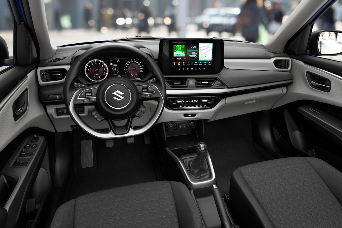 De vanafprijs van de nieuwe Suzuki Swift valt tegenwoordig in ieder geval op papier als behoorlijk vriendelijk te bestempelen. De basisuitvoering Comfort biedt al Smart Entry (keyless), een multimediasysteem met een 9-inch display, airco, elektrisch bedienbare ruiten voor en achter, draadloze Android Auto en Apple CarPlay-connectiviteit, navigatie, verwarmbare buitenspiegels, ledverlichting rondom én Suzuki Safety System Pro. Dat laatste omvat onder meer adaptieve cruisecontrol, dodehoekdetectie, een actieve rijbaanassistent, verkeersbordherkenning en Rear Cross Traffic Alert.