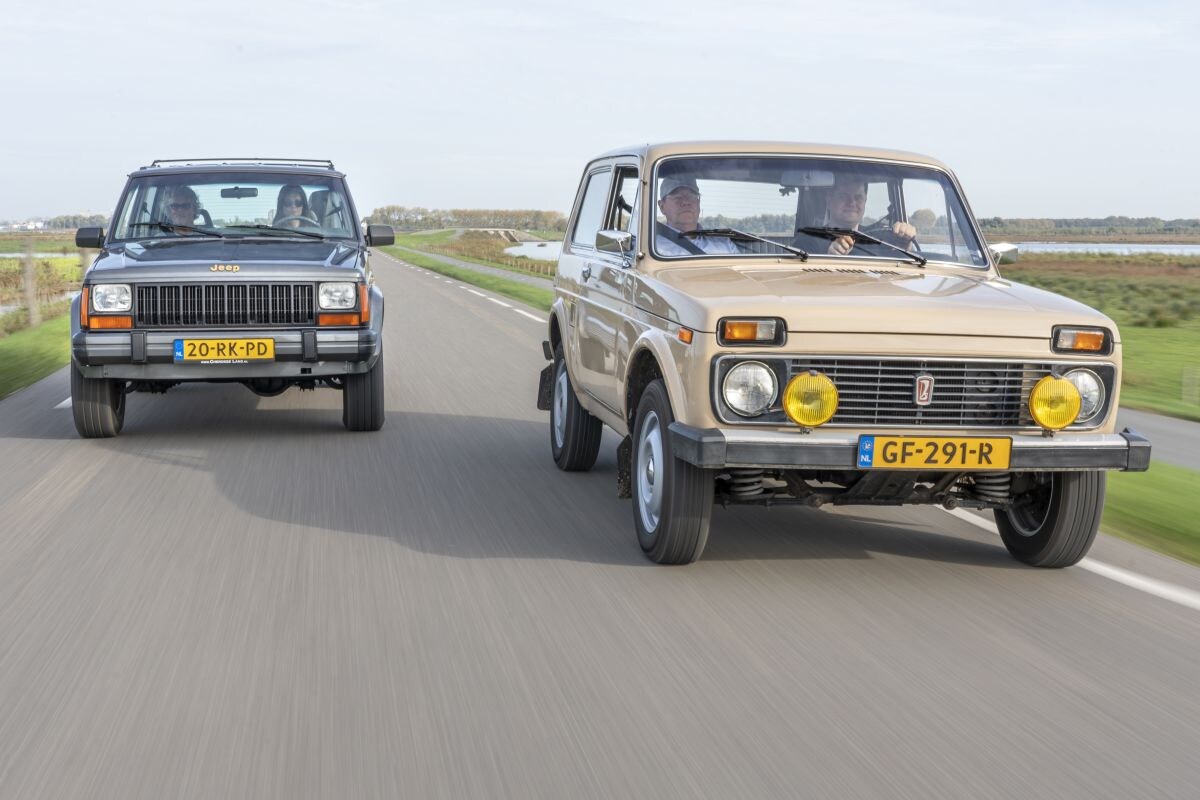 De Lada Niva (rechts) komt uit 1986 en zit goed, de Jeep Cherokee (1989) wordt nooit belastingvrij