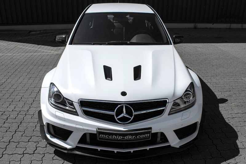 Inmiddels weten we welk compleet nieuw blok Mercedes in onder andere de C 63 AMG gaat lepelen. De Duitsers kiezen voor een 4.0-liter V8 met twee turbo's, die in de AMG GT goed is voor 510 pk en 650 Nm aan trekkracht. Daarmee valt het doek voor de atmosferische 6.208 cc grote V8 die voorin het vorige model voor een enorme bak herrie en een zo mogelijk nog grotere hoeveelheid spektakel zorgde. De Duitse tuner McChip-DKR zwaait de C 63 AMG uit met een wel heel sterk exemplaar.