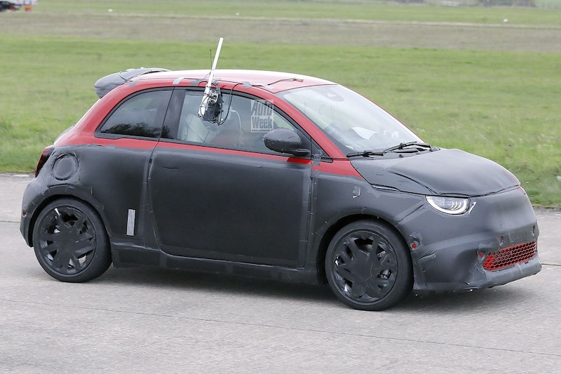 De eerste elektrische Abarth in testkostuum.