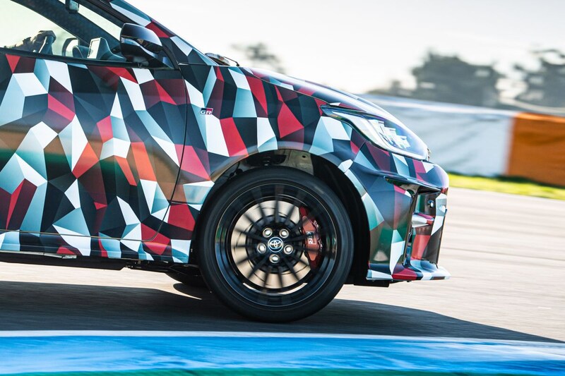 Hoewel Toyota de auto hier en daar nog wat geheimzinnig probeert te houden met het nodige camouflagewerk is helder dat het geheel dik aangekleed is met een flinke bodykit. Niet geheel overbodig, gezien het feit dat ook de spoorbreedte is gegroeid ten opzichte van de reguliere Yaris. Rondom is de driedeurs stevig uitgebouwd en staat hij stevig op zijn gitzwarte 18-inch wielen. Aan de achterzijde omhult een stevige bumper twee flinke uitlaten. Al met al geen overbodig uiterlijk vertoon voor dit bommetje, dat we waarschijnlijk pas ver in 2020 voor het eerst op de Nederlandse wegen kunnen aantreffen. De sportiefste derivaten van concurrenten als de Peugeot 208, Volkswagen Polo en Renault Clio mogen hun borst nat maken.