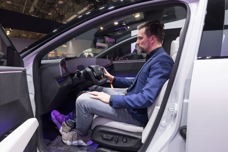 De Honda 0-Saloon en de Honda o-SUV. Zo heten de nieuwe auto’s. Hier schreven we eerder over de onthulling van de auto's, maar nu konden we er ook een rondje omheen lopen. Let op, dat zijn werknamen van de prototypes. De naam van de productieversies wordt later naar buiten gebracht. We weten in ieder geval dat de bijzondere creaties op deze pagina’s ook naar Nederland komen. Want creaties, dat zijn het. Honda heeft sowieso de reputatie dat het niet bang is buiten de lijntjes te tekenen en deze SUV en sedan zijn opnieuw een staaltje durf. De sedan combineert de neus van een Lamborghini Gallardo met een vleugje Miami Vice. Het is nog een prototype, en er zullen nog een paar kleine tweaks komen aan de koets. Denk aan de spiegels, en de kofferbak, die nu nog niet open kan. Maar veel blijft. De neus, de extreme laagheid van de koets en ja ook het yoke-steer in de cockpit. Ook het ruimtelijke concept, dat sowieso een belangrijke pijler is van de 0-serie van Honda, blijft gehandhaafd. Dit betekent dat je je na het instappen nog een flink stuk naar achteren moet laten vallen, met gigantisch veel beenruimte tot gevolg. Voor lange mensen wordt het evengoed een klus om soepel binnen te komen, want hij is echt heel laag. Eenmaal zittend is de hoofdruimte wel goed. Voorin twee grote schermen als onderdeel van Honda’s nieuwe OS. Het merk noemt het besturingssysteem 'Asimo', naar de robot die het in 2000 aan de wereld liet zien. Het systeem wordt continu over-the-air geüpdatet en integreert de dagelijkse functies met de ADAS-systemen en AI-techniek die het beide auto’s mogelijk maakt om level 3 autonoom te rijden. Dit betekent concreet dat de chauffeur zijn ogen van de weg kan halen. Zodat je remote kunt vergaderen of een film kunt kijken. Het yoke-stuur blijft zoals gezegd ook bij de finale versie. Zodra de auto het rijden overneemt, schuift het verder van je weg en andersom.