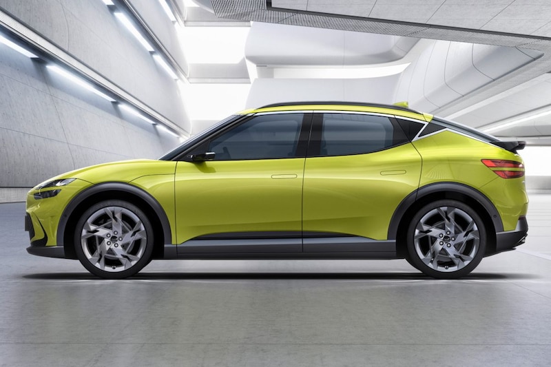 De GV60 is wellicht niet direct herkenbaar als Genesis, hoewel er aan de tekentafel wel typische Genesis-designelementen zijn toegevoegd. Zo heeft ook de GV60 gespleten koplampen en in tweeën gedeelde achterlichten. De auto zelf oogt opvallend rond en heeft een afgeknotte bilpartij. Opvallende designelementen zijn het eigenwijze hapje dat uit de C-stijl is genomen en de achterspoiler onderaan de achterruit. Vanbinnen is de EV60 typisch een Genesis en dat betekent dat het interieur zowel klassiek als modern aandoet. De EV60 heeft digitale buitenspiegels en dus vinden we tussen de deurpanelen en het dashboard losse displays waarop het beeld van de op stokjes geplaatste camera's wordt weergegeven.