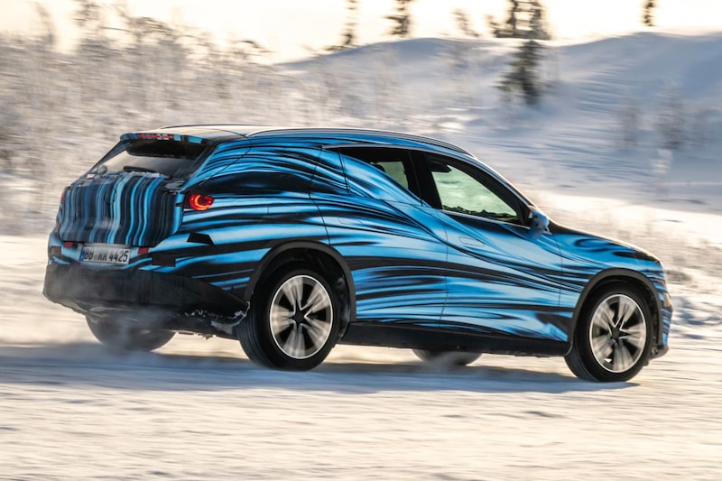 Op dit minder gecamoufleerde exemplaar zien we weer wat beter hoe dat uitpakt voor de elektrische GLC. Ook krijgen we daarmee mogelijk al een beetje te zien hoe de volgende brandstof-GLC eruitziet, omdat de uiterlijke verschillen tussen de twee vermoedelijk minimaal worden. Dat betekent overigens niet dat de GLC EQ en volgende reguliere GLC in de basis dezelfde auto zijn. De GLC met elektrische aandrijflijnen staat op het voor EV's bestemde MB.EA Small geheten platform, waarop de elektrische C-klasse ook troont. We verwachten de elektrische GLC pas in 2026. De nieuwe brandstof-GLC laat nog wel wat langer op zich wachten, want de huidige GLC draait pas sinds 2022 mee.