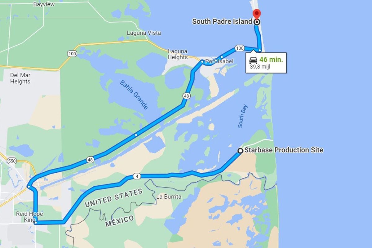 Om te begrijpen hoe dat zit, moeten we even inzoomen. South Padre Island is het zuidelijkste stuk van een landstrook die als een soort natuurlijke barrière voor de kust van Zuid-Texas ligt. Er is ook een dorpje met deze naam. Net ten zuiden van dit eiland, dat overigens wel met een brug bereikbaar is, ligt Starbase, een lanceerbasis en rakettenfabriek van Musks ruimtevaartbedrijf SpaceX.