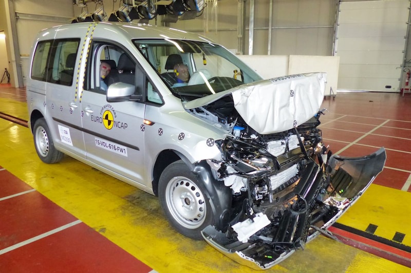 De Volkswagen Caddy kreeg een minpunt op het rapport vanwege de grote kier die ontstaan was tussen schuifdeur en B-stijl na een zijdelingse crash. Omdat de bescherming van het bekken van de voetganger bij een aanrijding werd beoordeeld als 'slecht', moest de Caddy een vol punt inleveren op het eindrapport.