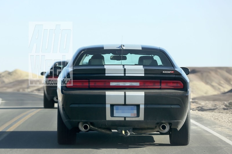 Onze spionagefotograaf kwam een colonne Dodge Challengers in SRT8-trim tegen. In The States natuurlijk niet zo'n wonderbaarlijk fenomeen, maar een deel van de spierbundels bleek behoorlijk afgeplakt. De kans is klein dat Dodge al een geheel nieuwe versie van z'n muscle car klaar heeft staan. Daar zijn de machines niet genoeg voor afgeplakt en bovendien is de Challenger in 2011 nog bijgeschaafd. Wat is hier dan wel aan de hand?