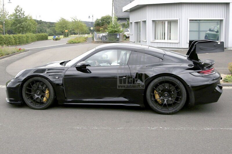 Op het oog krijgt deze RS een nog grotere achterspoiler, eindigt het uitlaatsysteem nu in het midden van de achterkant en worden alle bumpers en sideskirts nog net even dikker aangezet. Daarbij weet de spionagefotograaf de 'motorkap' uitgebreid te fotograferen. Hoewel Porsche daar druk in de weer is geweest met camouflagemateriaal zien we duidelijk dat er grote ventilatieopeningen zitten. Daarbij krijgen ook de voorspatborden extra luchtgaten.