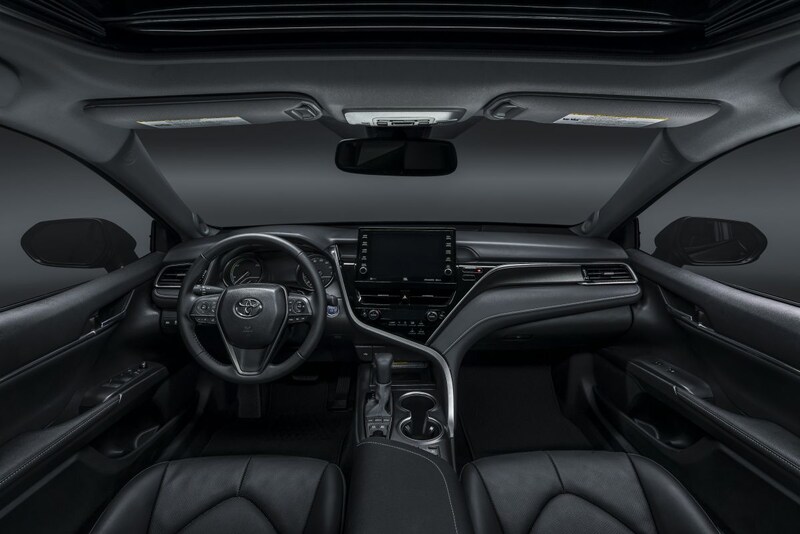 Ook vanbinnen is er nieuws. Waar de Camry momenteel een in de middenconsole geïntegreerd 8-inch display heeft, staat het scherm in de bijgewerkte Camry min of meer los op het dashboard. Het scherm is te krijgen in de maten 7- en 9-inch en het systeem erachter kan voortaan overweg met onder meer Apple CarPlay en Android Auto. Minstens zo interessant is de introductie van Toyota Safety Sense 2.5+, de nieuwste versie van Toyota's uitgebreide pakket veiligheidssystemen. Het omvat verbeterde versies van systemen als Pre-Collision System. De adaptieve cruisecontrol is voortaan in staat om de Camry volledig tot stilstand te brengen. Zodra de voorligger gaat rijden, wordt ook de Camry weer in beweging gezet. Wel zo prettig in de file. De adaptieve cruisecontrol is gekoppeld aan de verkeersbordherkenning en past er automatisch de snelheid op aan.