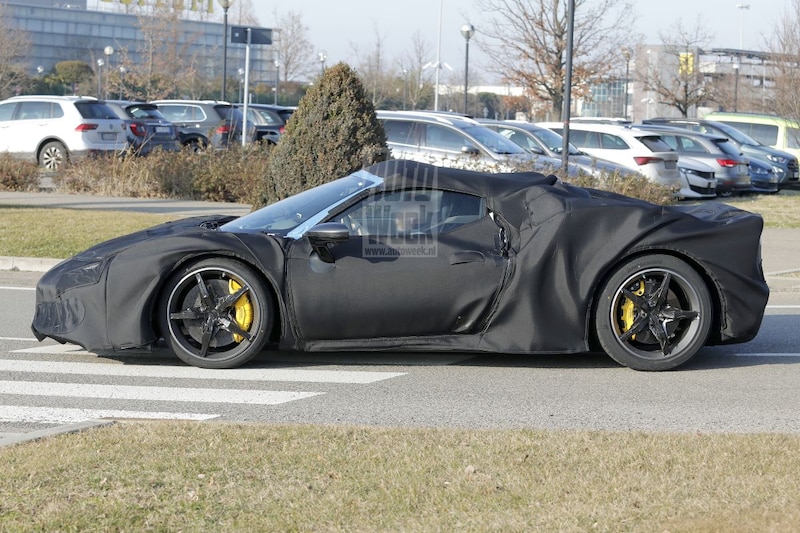 Onze spionagefotograaf spotte een heftig ingepakte versie van de Ferrari 296 GTB en dat lijkt erop te duiden dat er een zogenoemde Versione Speciale in het vat zit. In de volksmond ook wel bekend als een heftiger versie. Reken behalve op een nog wat uitgesprokener sportief uiterlijk op een stoot extra vermogen. Wellicht schoppen de 3.0 V6 en de elektromotor het straks samen wel tot zo'n 900 pk. We wachten het af.