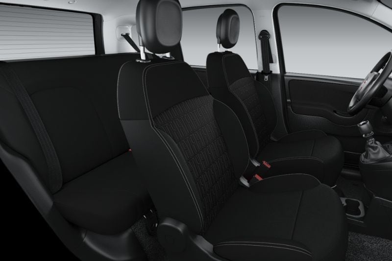 De achterbank heeft in de basis-Panda geen hoofdsteunen.