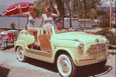 VIP toeristen op het Italiaanse eiland Capri worden rondgereden in deze Fiat Panda Jolly. Het autootjes is een 'remake' van de 500 Jolly die in de jaren '60 door het ontwerphuis Ghia werd gemaakt. Het werd in de jaren '60 een icoon rond de Middellandse zee; onder meer de familie Onassis liet zich er graag in zien. De moderne variant is het Centro Stile van Fiat en is gebouwd door Stola, dat eerder bekend werd van de verlengde Lancia Thesis.