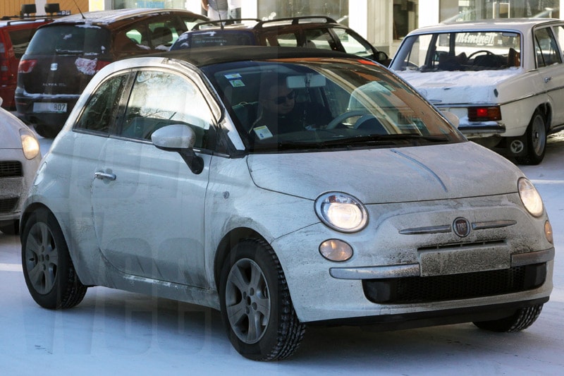 Fiat is helemaal klaar voor de presentatie van de 500 cabriolet. De auto rijdt al kant-en-klaar zijn testrondjes in de sneeuw.