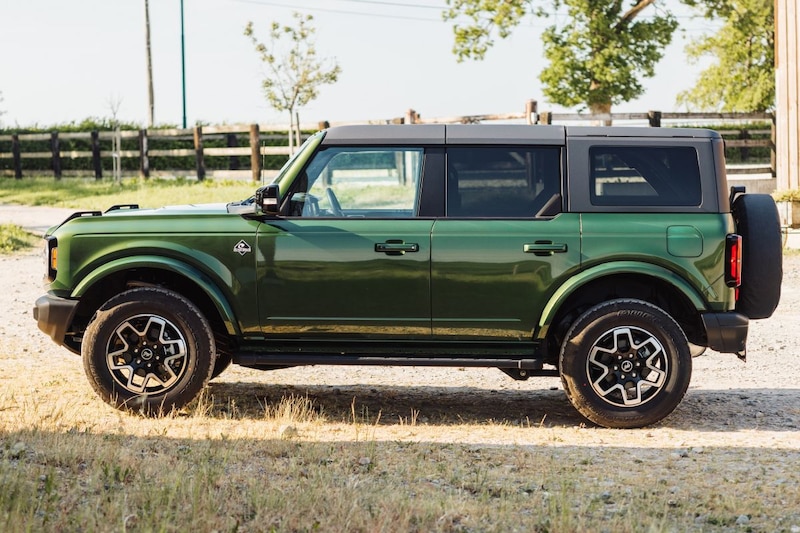 De 2.7 V6 helpt de Ford Bronco Outer Banks in 6,7 seconden aan een snelheid van 100 km/h. De avontuurlijker uitgevoerde Badlands bereikt diezelfde snelheid na 7,2 seconden. Niet gek voor bonkige offroaders die 2.114 en 2.243 kilo in de schaal leggen. De topsnelheid van beide varianten bedraagt 161 km/h. Het gemiddeld verbruik van 10,2-10,7 l/100 kilometer is minder fantastisch, maar eenvoudig verklaarbaar.