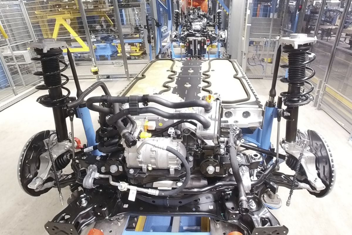 Ford heeft vol ingezet op EV’s ten faveure van fossiele auto’s. Momenteel heeft Ford één BEV in het gamma, de uit Mexico afkomstige Mustang Mach-E. En voordat volgend jaar de Puma Gen-E in de showroom staat komt daar nu de elektrische Explorer bij, samen met de van de Explorer afgeleide Capri, een sports cross-over variant. Die elektrische Explorer heeft niets te maken met de gelijknamige hybride Amerikaanse SUV en is alleen voor de Europese markt bedoeld. Om snel met de elektrische Explorer en diens cross-over-variant te kunnen komen heeft Ford zich bij Volkswagen gemeld voor VW’s schaalbare MEB-platformarchitectuur. Dat MEB vormt nu de basis voor de elektrische Explorer. Wanneer we door de fabriek lopen zien we overal onderdelen met VW-logo’s, van stukken bodemplaat tot McPherson-veerpoten en het accupakket. De Explorer is onderhuids dan ook weinig anders dan een Volkswagen ID.4 (die sinds 2020 op de markt is). De intentie is om 600.000 MEB-Fords te bouwen. Ondertussen wordt hard gewerkt aan de ontwikkeling van een eigen elektrisch platform, voor EV’s die na de Explorer en Puma geïntroduceerd zullen worden.