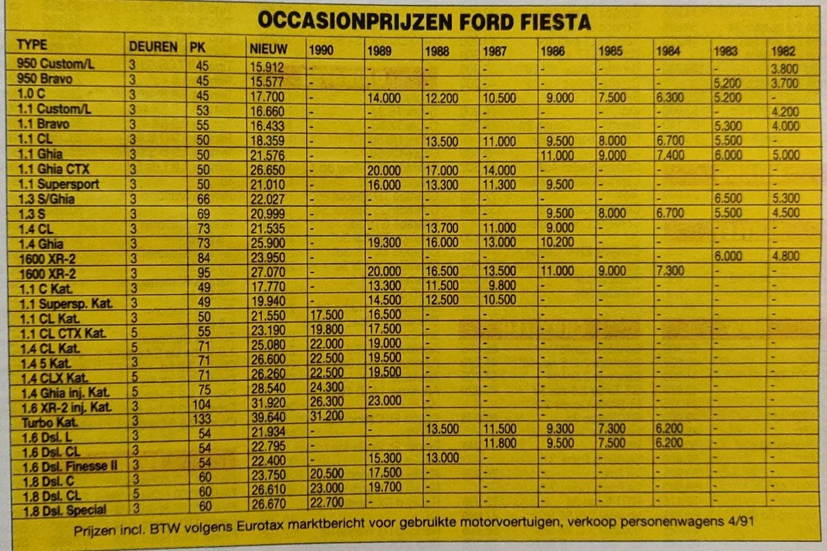 De eerste Ford Fiesta was in 1991 'pas' 15 jaar oud, maar destijds was een auto van die leeftijd eigenlijk al niet heel interessant meer als tweedehands, of je moest echt met een klein budget op zoek zijn. Qua duurzaamheid is er wat dat betreft een hoop verbeterd in de jaren die kwamen. Ford zelf zorgde ook voor de nodige verbetering om de Fiesta Mk2, in wezen een grondig gefacelifte Fiesta Mk1, klaar te stomen voor een wat langer leven. Het zoeken naar een gebruikte Fiesta in 1991 was dan ook een interessante aangelegenheid. Voor een relatief prikkie kocht je namelijk een laat exemplaar van de eerste generatie. Een Mk1 uit 1983 kon zomaar 4.000 gulden goedkoper zijn dan eentje van drie jaar later.