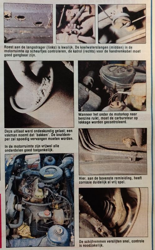 Zo bleek ook bij de geteste auto, onder meer door slecht laswerk aan de uitlaat en onbehandelde roestvorming op de remleidingen. Een ander ding om op te letten, was of de carburateur (injectie was er nog niet bij) nog goed was. Een naar benzine ruikende Fiesta, iets dat op die leeftijd geen uitzondering was, verraadde dat de carburateur aan vervanging toe was. Een ander aandachtspunt was de versnellingsbak. Die wilde naar verloop van tijd nog wel eens nukkig worden. Geknars en gerammel bij het schakelen waren grote alarmsignalen, aangezien kapotte bakken geen zeldzaamheid waren. Moeizaam schakelen naar zijn derde versnelling was een voorbode van grotere problemen op de langere termijn.