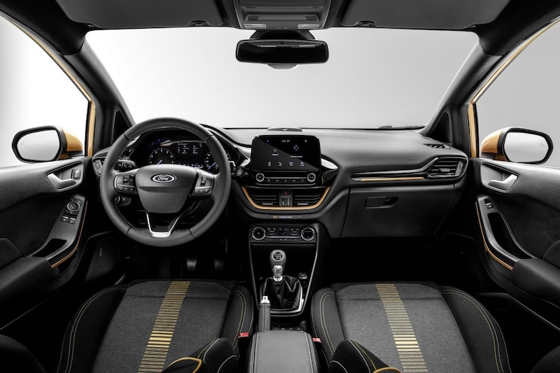 De Active-uitvoering houdt in dat de Fiesta er stoerder uitziet, luxer is uitgevoerd en wordt voorzien van de nieuwste technologie. Een Active herken je aan de verhoogde koets (19 mm), optionele dakrails en kunststof accenten rondom. Ook de 17-inch lichtmetalen wielen en bumpers wijken af van de normale Fiesta en Ford voegt de 'Lux Yellow' lakkleur aan het palet toe. Naast de automatische airconditioning, licht- en regensensor en het SYNC3 connectiviteitssysteem biedt de First Edition standaard onder meer parkeersensoren achter, een ander geluidssysteem met tien speakers en adaptieve cruisecontrol. Instappen kan met de sleutel in de broekzak dankzij keyless entry.