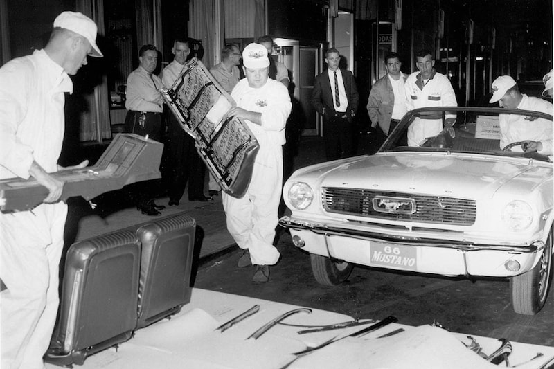 Dat betekent dat de Mustang simpelweg in stukken wordt gezaagd. In 1965 onderging een prototype van de Mustang Convertible hetzelfde lot, deze werd in drie stukken gesneden. De nieuweling is 18 centimeter langer en 10 centimeter breder dan z'n verre voorvader, een hele klus dus voor de zagerij.