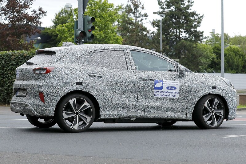Die Ford Puma Gen-E is op deze foto's weer te zien. Met zijn volledig dichte bovenste grille verraadt deze variant de aanwezigheid van een volledig elektrische aandrijflijn. Het ontbreken van zichtbare uitlaateindstukken is overigens geen herkenningspunt, aangezien die bij de Puma met benzinemotoren zónder ST-Line-optiek evenmin zichtbaar zijn. Verder lijkt de Puma Gen-E vooral heel veel op de modellen met verbrandingsmotoren.