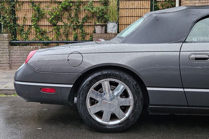 Het exemplaar op de foto's komt uit 2004 en werd vermoedelijk nieuw geleverd in de VS. In 2020 werd de auto ingevoerd in Nederland, waarna hij eerst een tijdje lijkt te zijn ingezet als zakelijke youngtimer. De huidige eigenaar mag zich sinds een maand of vier zo noemen en voor diegene is het te hopen dat de zomer na een snikhete juni en een kletsnatte juli nog een zonnig staartje krijgt. Met het dak naar beneden is het immers het gemakkelijkst om met de Thunderbird over te komen als 'gedistingeerd' bestuurder.