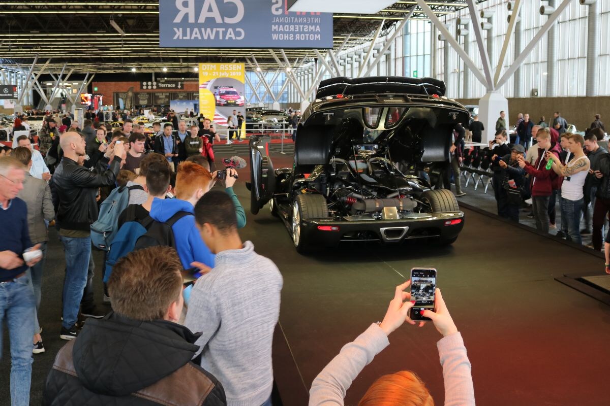 Bij het stukje beurs met historische en nieuwe Ferrari’s staat Charlotte de (meestal) rode auto's te bewonderen. Haar vriend Jelle probeert het Italiaanse geweld met zijn smartphone vast te leggen. “Ja, mijn keuze was het niet per se om hierheen te gaan, maar uit liefde…”, zegt Charlotte, terwijl ze haar partner in z’n zij knijpt. “Nee, dat was een grapje hoor. Ik moet toegeven dat ik het stiekem best gaaf vind allemaal”, fluistert de blondine zo zacht mogelijk zodat haar wederhelft niks hoort. Verderop horen we een bestuurder flink gas geven, waardoor het geluid van het motorgebrul de zaal vult. Het blijkt de Koenigsegg CCXR te zijn die zijn spieren op de ‘Car Catwalk’ laat zien. Autspotters snellen naar het podium om te smullen van het geweld.