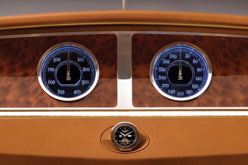 De vormgeving van het dashboard is teruggebracht tot twee klokken. Die zijn in het midden geplaatst, zodat ook de achterinzittenden kunnen meekijken wat het vermogen en de snelheid doen. Het tourbillion-klokje dat is geplaatst op het dashboard, is afkomstig van de Zwitserse horlogemaker Parmigiani Fleurier. Het kan worden uitgenomen en worden gebruikt als polshorloge, zakhorloge of tafelklok.