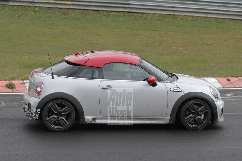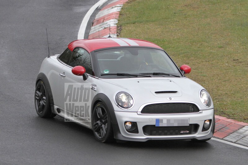 Dat zat er natuurlijk wel in, nadat we eerder al beelden zagen van de Mini John Cooper Works GP was het wachten op de Coupé. Daarvan zie je hier de eerste beelden, de gecamoufleerde achterzijde met diffuser verraadt z'n potentie.