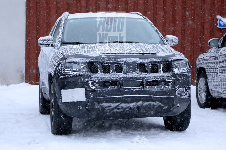 De Jeep Compass ondergaat een facelift die kennelijk ook voor Europa gaat gelden. Een ingepakte Compass getuigt daarvan, al is het inpakken waarschijnlijk al niet echt meer nodig.
