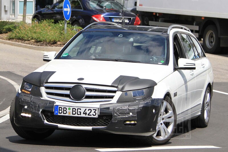 Op de foto's is goed zichtbaar dat de C-klasse nieuwe koplampen krijgt, die aan de bovenkant wat frivoler van vorm worden. Onze collega's van AutoBild lieten vorig jaar al een computerillustratie zien van de nieuwe neus voor de C-klasse.