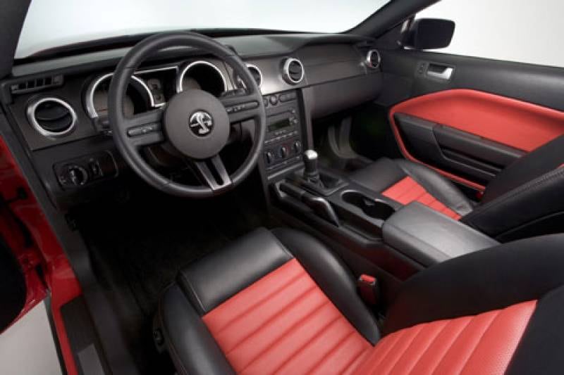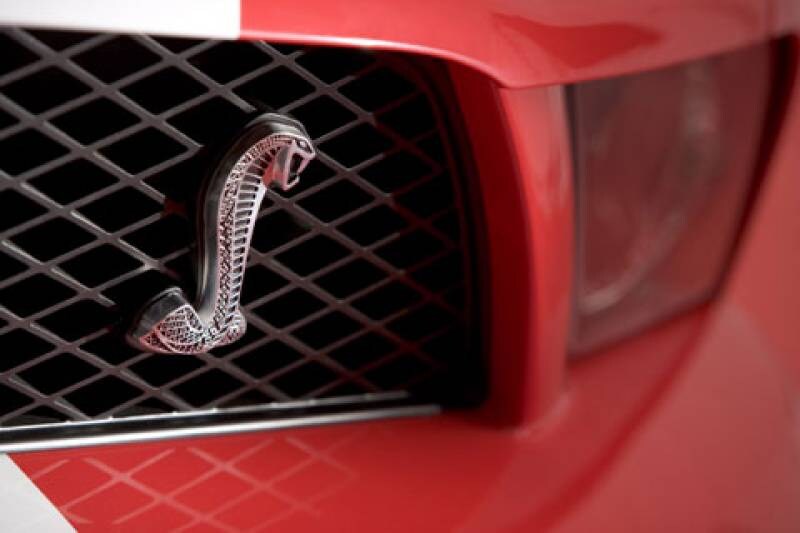 Van buiten is 't niet te missen om welke versie van de Mustang 't gaat: slangenemblemen sieren de grille en de voorschermen en op de plaats waar vroeger de dop voor de benzinetank zat (middenachter dus) is en groot Cobra-embleem geplaatst. Binnenin is de snelle Mustang uitgerust met zwart/rood leer, sportstoelen en een speciale middenconsole.