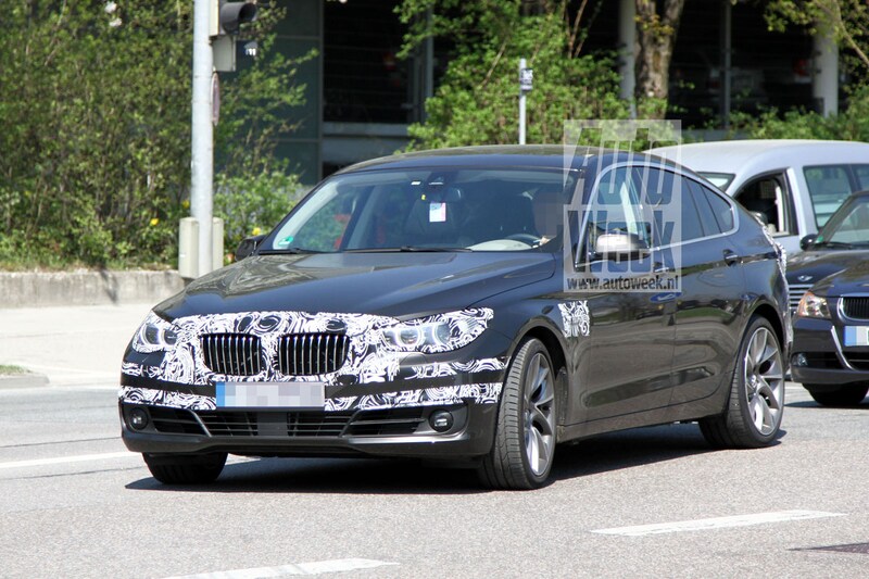 Ook de 5-serie GT wist niet te ontkomen aan de camera van onze fotograaf. Op deze 5-serie-met-hoge-kont, die overigens op het platform van de 7-serie staat, kunnen we de nieuwe voorbumper beter bekijken. Ook de GT krijgt licht gewijzigde lichtunits. Aan de achterzijde lijken de veranderingen groter te zijn, al bedekken de psychedelische plakkers nog erg veel plaatwerk. De stickers lopen door tot aan de rand van het raam, en dat is opvallend. Het is niet ondenkbaar dat de 5-serie GT evenals de kersverse GT-uitvoering van de 3-serie de beschikking krijgt over een kleine uitschuifbare achterspoiler. Later dit jaar wordt de auto officieel uit de doeken gedaan, tot die tijd zullen we het met deze spionagebeelden moeten doen.