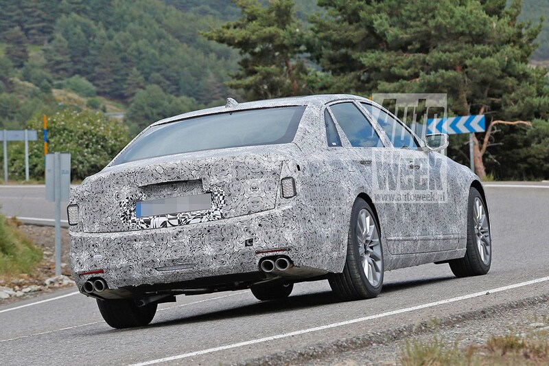 Onze spionagefotograaf liep dit ingepakte testmodel in Spanje tegen het lijf. Hoewel de CT6 nog fanatiek is afgeplakt, valt al iets van het nieuwe ontwerp te zien. Cadillac lijkt de CT6 te overgieten met een aantal designelementen van de Escala Concept die in augustus vorig jaar werd gepresenteerd. Zo lijkt het erop dat de grille wordt herzien en dat ook de koplampen opnieuw zijn ontworpen. Mogelijkerwijs wisselt de CT6 zijn momenteel verticaal georiënteerde koplampen voor horizontale exemplaren die ook op het reeds genoemde studiemodel zaten.